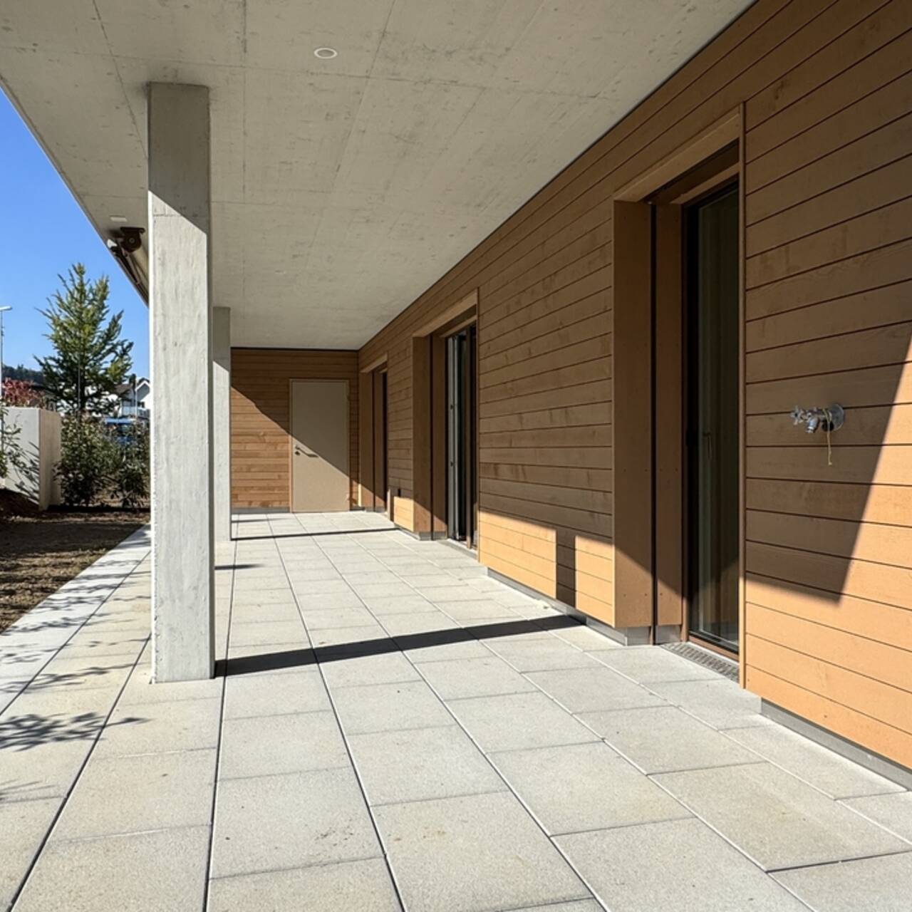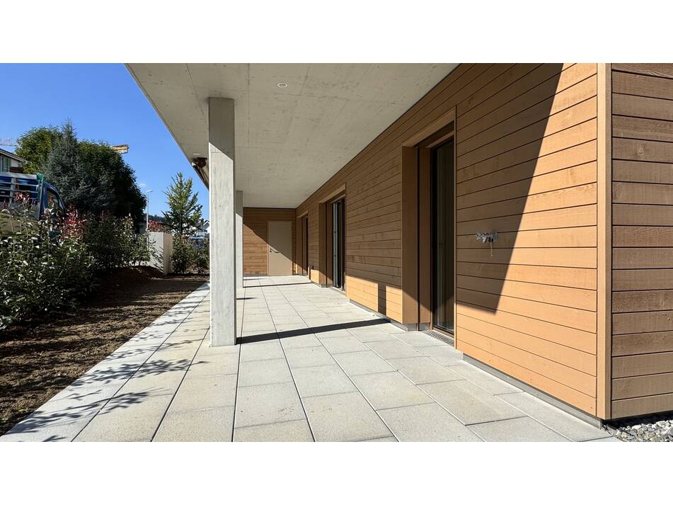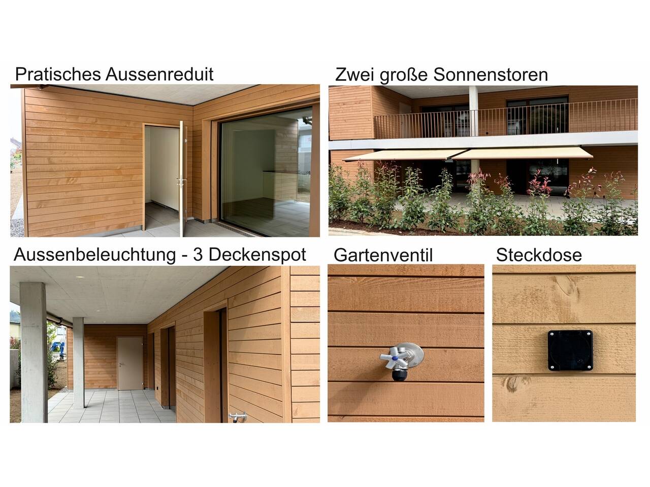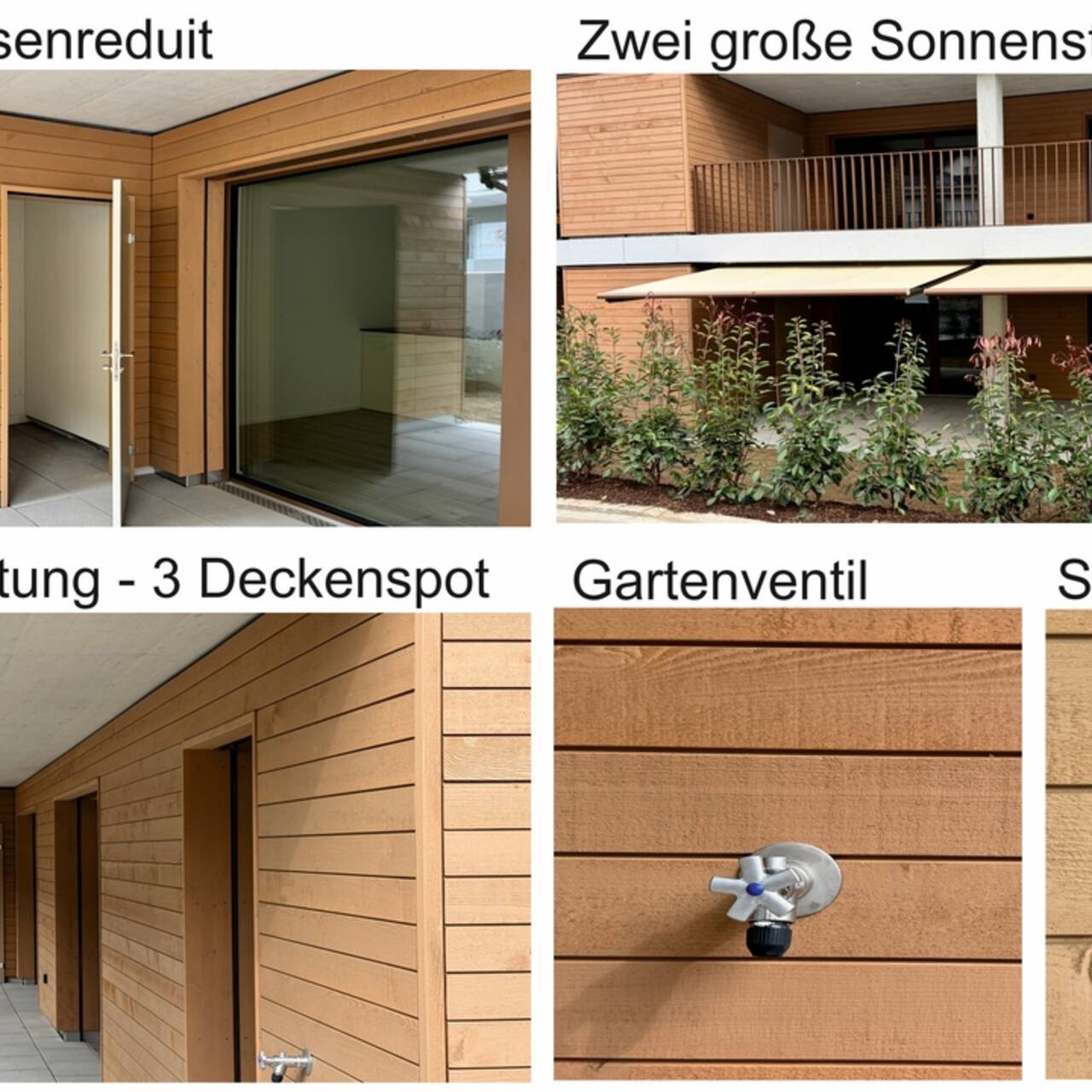 Die familienfreundliche 4.5 Zimmer Gartenwohnung verfügt über 121.60m2 Nettowohnfläche mit zusätzlichem, praktischen Aussenreduit. Der ca. 140m2 grosse Gartenanteil bietet viel Platz für Esstisch, Liegestühle, Outdoor-Grill und/oder Plantschbecken für Kinder. Die Terrasse ist auf einer Fläche von 35m2 überdeckt und verfügt somit über einen optimalen Wetter- und Sonnenschutz. Betritt man das Entrée steht der Familie eine sehr geräumige Garderobe mit viel Stauraum zur Verfügung. Die Wand zur Küche ist im oberen Bereich offen, wodurch das Entrée an Ambiente und Volumen gewinnt. Vom hier gelangt man ins offene Wohnen, welches sich auf einer Fläche von rund 50m2 in zwei Bereiche gliedert. Die Küche zur rechten ist vollausgestattet und bietet mit der über 2.80 Meter langen und freistehenden Kochinsel viel Arbeitsfläche und Stauraum. Der Wohnraum zur linken erlaubt eine individuelle Einrichtung durch die generösen Platzverhältnisse und erschliesst über die bodentiefen Fenster die überdeckte Terrasse. Durch das "Vordach" und die breiten Sonnenstoren ist die Terrasse gut vor Hitze und Sonne geschützt und lädt zum Verweilen im Aussenbereich ein. Das praktische, hinter der Küche angesiedelte Reduit, bietet zusätzlich Stauraum und ist mit einem Waschturm ausgestattet. Das Elternschlafzimmer bildet einen Rückzugsort mit Tageslicht Bad "En Suite" und hervorragenden Platzverhältnissen. Die zwei Kinderzimmer sind mit knapp 14.0m2 identisch gross und ermöglichen über bodentiefe Fenster den direkten Zugang zum Garten. Diese eignen sich gleichermassen als Kinderzimmer oder Büro.