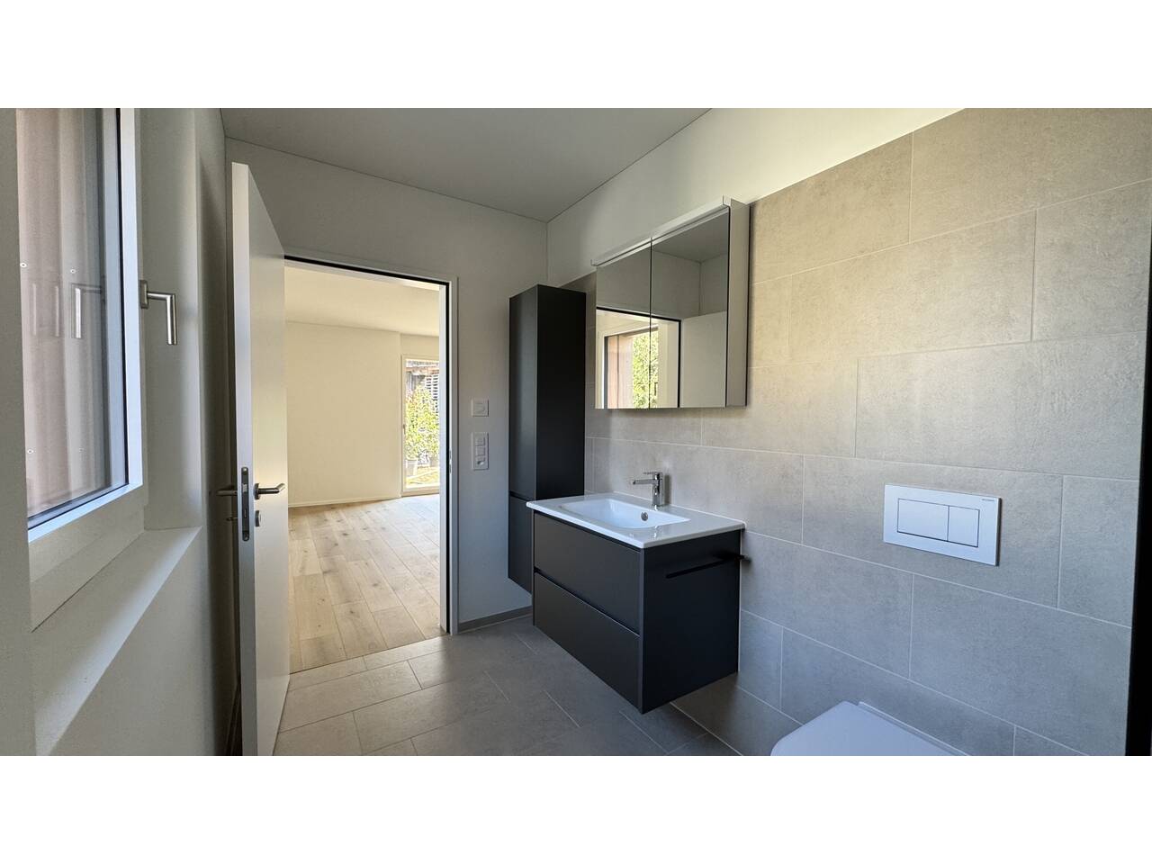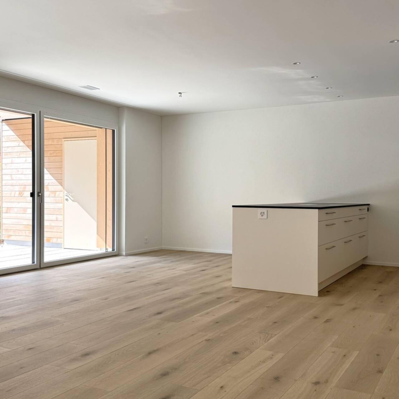 Die Krewo Immobilien AG baut nicht verkaufte Einheiten hochwertig aus. Das hat den Vorteil, dass Käufer den Innenausbau besichtigen können und der Bezug sehr schnell möglich ist. Nebst moderner Gebäudetechnik mit individuell kontrollierbarer Wohnraumlüftung und Freecooling (Kühlung über Bodenfläche im Sommer) ist auch die Materialisierung dieser fertig ausgebauten Wohnung sehr hochwertig definiert worden und das ohne massive Preisanpassung. Die Fotos zeigen Ihnen den tollen Ausbau und die geschmackvolle Materialisierung der Wohnung A1.