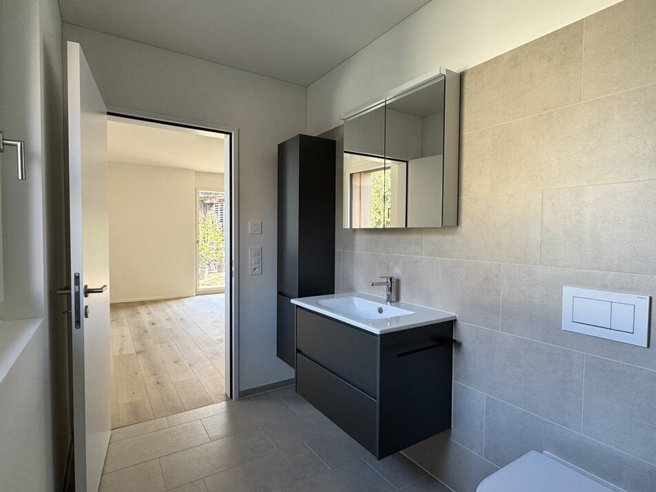 Die Krewo Immobilien AG baut nicht verkaufte Einheiten hochwertig aus. Das hat den Vorteil, dass Käufer den Innenausbau besichtigen können und der Bezug sehr schnell möglich ist. Nebst moderner Gebäudetechnik mit individuell kontrollierbarer Wohnraumlüftung und Freecooling (Kühlung über Bodenfläche im Sommer) ist auch die Materialisierung dieser fertig ausgebauten Wohnung sehr hochwertig definiert worden und das ohne massive Preisanpassung. Die Fotos zeigen Ihnen den tollen Ausbau und die geschmackvolle Materialisierung der Wohnung A3.