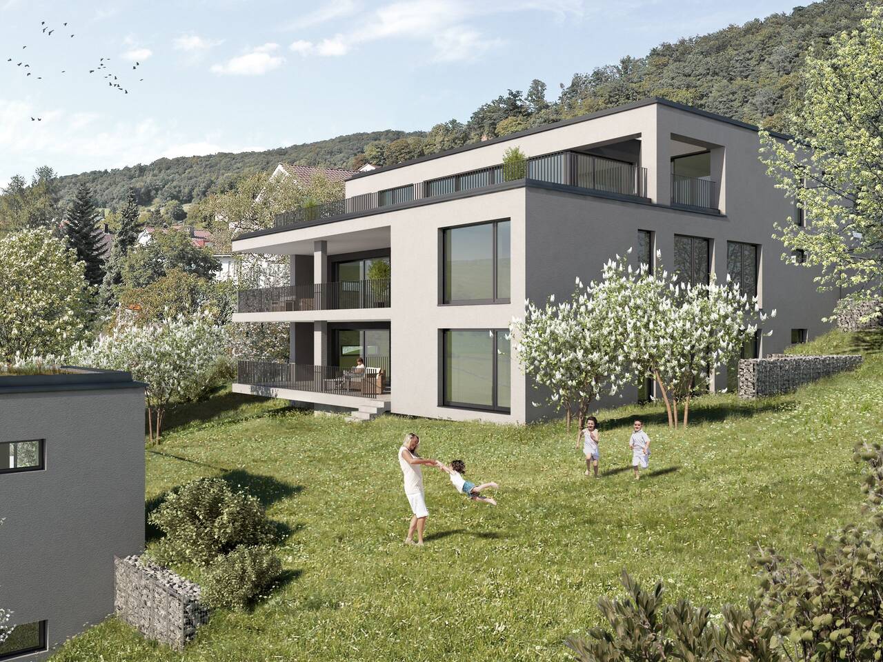Am Wisstrotteweg entsteht ein markantes Dreifamilienhaus welches die Architektur, Farbgebung und Kubatur des Terrassenhauses aufnimmt und zu einer Gesamterscheinung, der Überbauung Aarvista zusammenfügt. An dieser ruhigen, erhöhten und von Einfamilienhäusern geprägten Strasse gelangt man zum modernen Baukörper welcher mit sehr privaten Charakter und attraktiver Panoramasicht, drei Apartments beherbergt die man hier in dieser Art nicht vermuten würde.