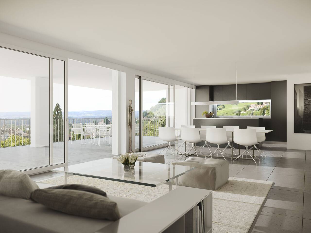 | Ebene 7 | 4.5 Zimmer Panoramawohnung | 150m2 | 46m2 | 8m2 | 12m2 | 200m2 |